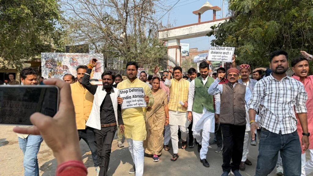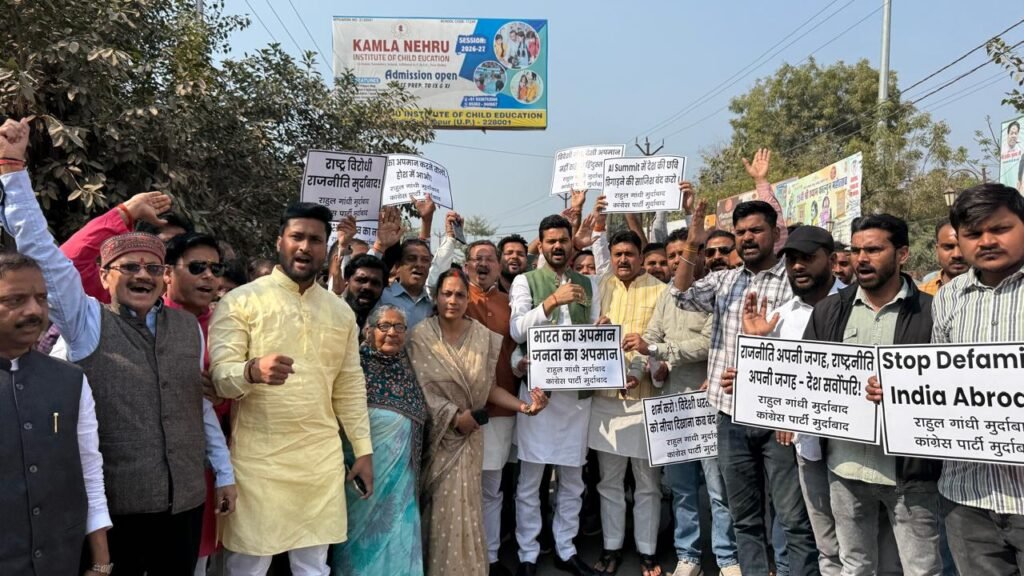 उन्होंने कहा आज भारत का डंका पूरी दुनिया में बज रहा है।भारत तेजी से हर क्षेत्र में विकास कर रहा है।राहुल गांधी देश की बढती लोकप्रियता व विकास को लेकर झूठ फैलाते हैं।प्रश्न उठाते हैं।देश को विश्व स्तर पर बदनाम करने की प्लानिंग राहुल,सोनिया और प्रियंका गांधी के नेतृत्व में बनाई गई। युवा मोर्चा जिलाध्यक्ष चन्दन नारायन सिंह ने यूथ कांग्रेस के अर्धनग्न प्रदर्शन की निन्दा करते हुए कहा आपरेशन सिंदूर हों या एयरस्ट्राइक और अब एआई समिति में कांग्रेस ने भारत विरोधी मनोवृत्ति को वैश्विक स्तर पर दिखाया हैं।पार्टी के मीडिया प्रमुख विजय रघुवंशी ने कहा भाजपा व मोदी सरकार का विरोध करते-करते राहुल व विपक्ष देश का विरोध करने पर अमादा हो गए है।आपको बता दें प्रधानमंत्री ने 16 फरवरी को एआई समिति का उद्घाटन किया था।यहां 16 देशों के राष्ट्राध्यक्ष समेत 100 से ज्यादा देशों के सीईओ व प्रतिनिधि मौजूद थे।यहां दुनियाभर की कंपनियों ने अपने लेटेस्ट एआई सोल्यूशंस को दुनिया के सामने पेश किया। इस मौके पर सुधांशु सिंह,अंकुर तिवारी,नगर अध्यक्ष प्रशान्त कसौधन,रीना जायसवाल,आकाश जैसवाल,शौर्य बर्धन सिंह,आकाश शर्मा,सचिन पाण्डेय,गौरव मौर्य,लकी झा,सचीन्द्र शुक्ला,अखिलेश जायसवाल, डॉ रामजी गुप्ता,ऋषभ वर्मा,अभिनव सिंह,प्रकाश नारायण,कृष्णा सिंह,हेमंत तिवारी,विजय मिश्रा,गांधी सिंह,दीपू शुक्ला,इन्द्रदेव मिश्रा, काली सहाय पाठक,वीरेंद्र भार्गव, अरुण द्विवेदी,लालेन्द्र प्रताप सिंह, हिमांशु गुप्ता, अयोध्या प्रसाद वर्मा, दिनेश चौरसिया, रजनीश मिश्रा,प्रदीप मिश्रा, राजीव सिंह आदि मौजूद रहे।