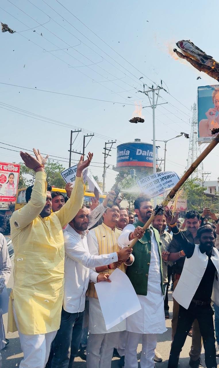 यूथ कांग्रेस के प्रदर्शन के विरोध में भाजपा युवा मोर्चा ने फूंका राहुल का पुतला