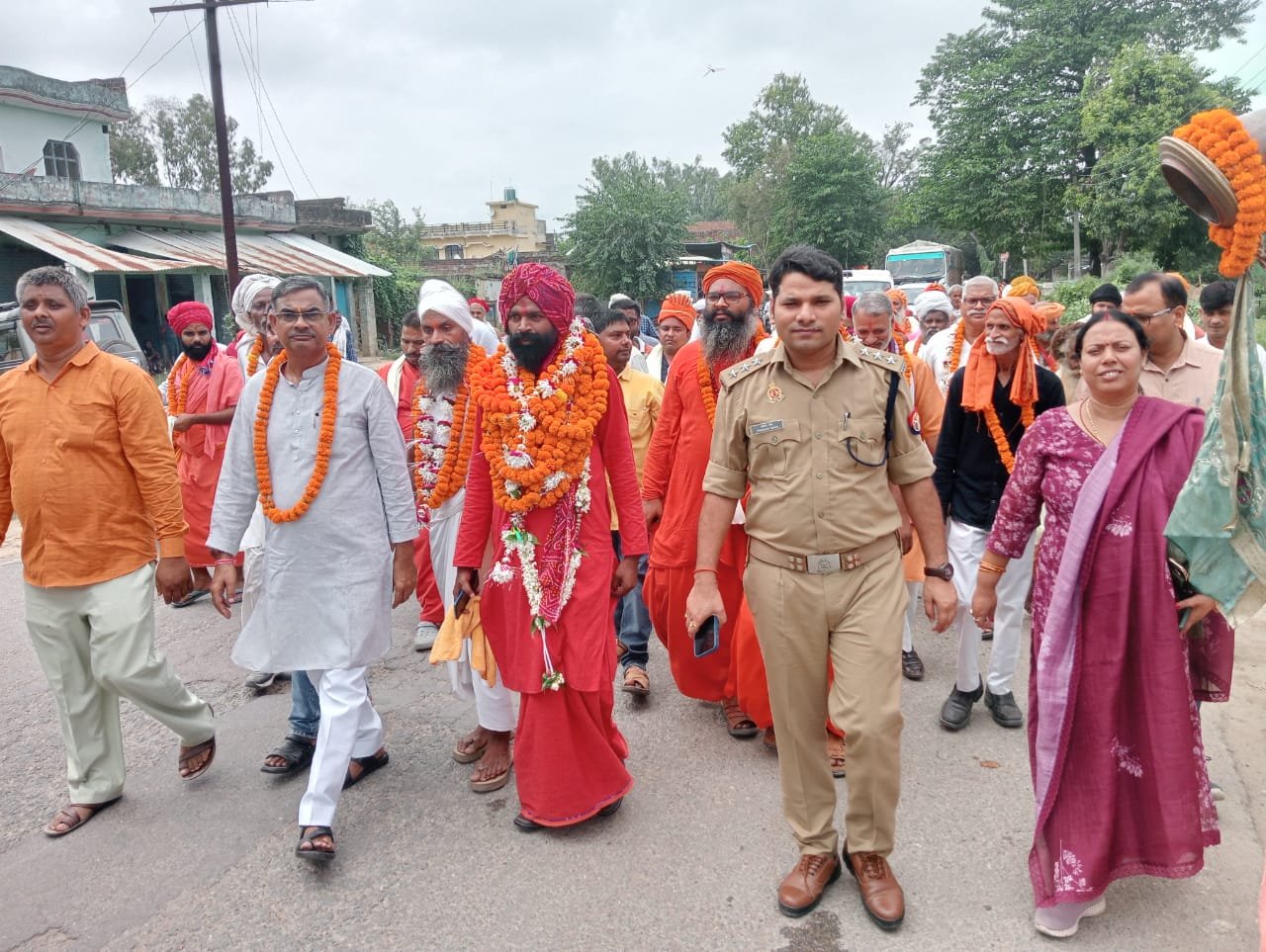श्री चंद्र जी महाराज के 529वें जन्मोत्सव पर निकली जन जागृत पद यात्रा पद यात्रा के समय एसडीएम …