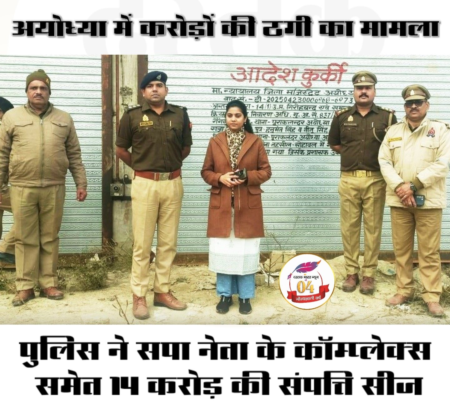 अयोध्या(अनुराग द्विवेदी)।प्रॉपर्टी डीलिंग के नाम पर बड़े फ्रॉड का खुलासा होने के बाद प्रशासन ने सख्त कार्रवाई की है। निवेश के नाम पर लोगों से करोड़ों रुपये की ठगी करने के आरोपी समाजवादी पार्टी के जिला पंचायत सदस्य राजा मान सिंह और उनकी पत्नी नीतू सिंह के खिलाफ गैंगस्टर एक्ट के तहत कार्रवाई की गई है। इनकी करीब 14 करोड़ रुपये की संपत्ति सीज कर दी गई है।बता दे जहां भी इंस्पेक्टर मनोज शर्मा की तैनाती रहती है लंबी पारी के साथ ही वेस्ट पुलिसिंग का संदेश देते हैं।