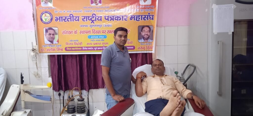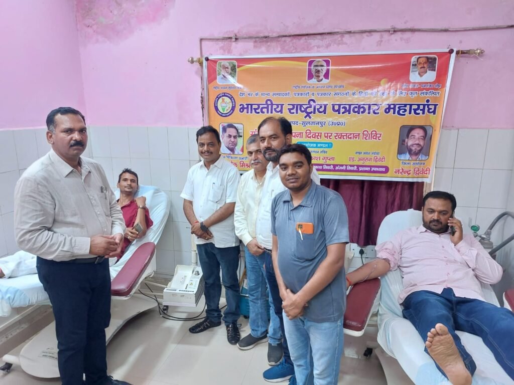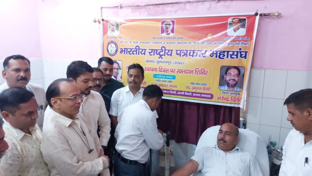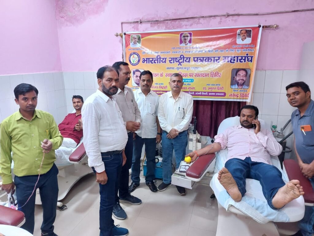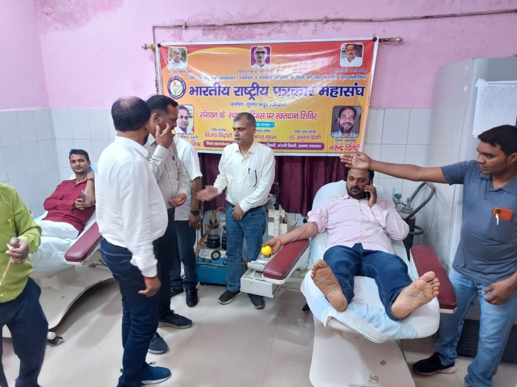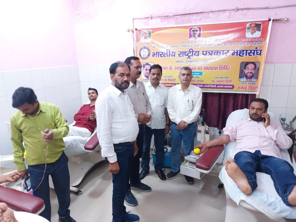 सुल्तानपुर।रक्तदान सबसे बड़ा दान है रक्तदान से नई जिंदगी मिलती है।भारतीय राष्ट्रीय पत्रकार महासंघ ने अपने 24 वें स्थापना दिवस पर पूरे देश मे अपने जिला इकाइयों के माध्यम से लोकतंत्र के चौथे स्तम्भ ने भी रक्तदान महादान में शामिल होकर एकजुटता का संदेश दिया है।पत्रकार महासंघ की सुल्तानपुर जिला इकाई ने राजकीय मेडिकल कॉलेज के ब्लड बैंक में रक्तदान शिविर का आयोजन कराया है।इतना ही जिले क तहसीलों इकाइयों ने भी विविध आयोजन किया गया।