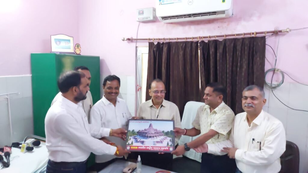 इसके पहले महासंघ के 24 वें स्थापना दिवस के पूर्ण होने पर आयोजित रक्तदान शिविर में संगठन के राष्ट्रीय चिकित्सा प्रभारी डॉ.अशोक मिश्रा, राष्ट्रीय महासचिव विजय विद्रोही,मंडल अध्यक्ष अनुराग द्विवेदी, जिला संयोजक नरेंद्र द्विवेदी के नेतृत्व में जिलाधिकारी जसजीत कौर को स्मृति चिन्ह के रूप में स्वर्ण मंदिर,एसपी सोमेन बर्मा को काली मंदिर,सीडीओ अंकुर कौशिक सीएमओ डॉ.डीकेत्रिपाठी,सीएमएस डॉ.एसके गोयल को श्रीराम जन्मभूमि अयोध्या की प्रतिमा व प्रभारी ब्लड बैंक डॉ.आर के मिश्रा को भेंट कर स्वागत किया।