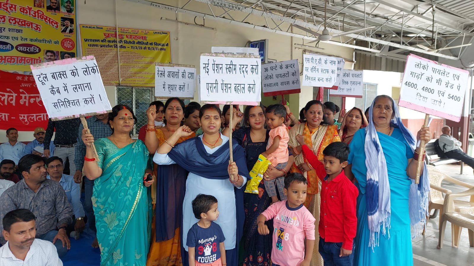 सुल्तानपुर में रेल कर्मचारियों के पक्ष में प्रदर्शन करने उतरी पत्नियां -बोलीं पति का फोन जमा कराना रेलवे …
