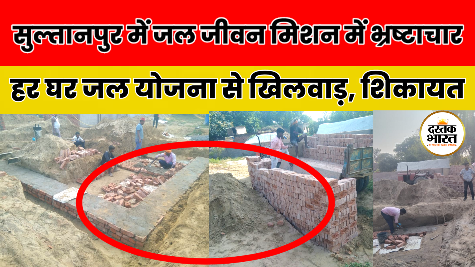 ठेकेदार घटिया ईट व सामग्री से पानी की टंकी और बाउंड्रीवॉल का निर्माण कराया जा निर्माण,प्रधान ने की …