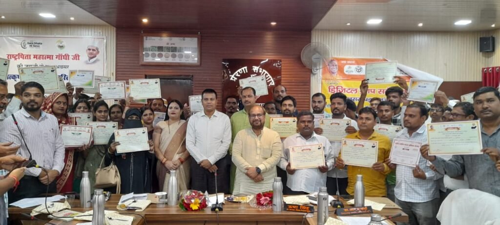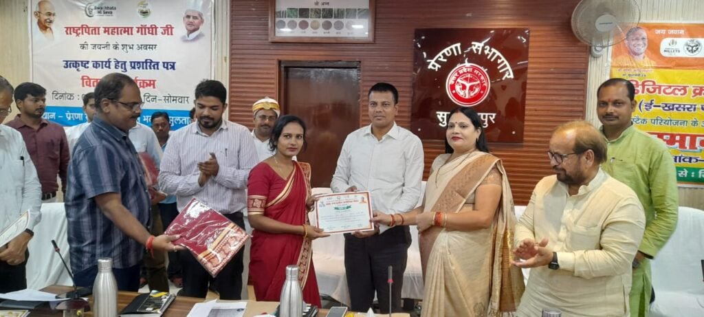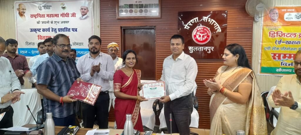 सुलतानपुर।महात्मा गाँधी के 154वीं जयन्ती के अवसर पर ‘स्वच्छता सेवा पखवाड़ा‘ में कमिश्नर व नोडल अधिकारी स्वच्छता अभियान गौरव दयाल की अध्यक्षता में एग्री स्टैक परियोजना के तहत डिजिटल क्राप सर्वे में अच्छा कार्य करने वाले 25 लेखपाल, 15 कृषि विभाग के कर्मचारी, 15 पंचायत सहायक, 10 चकबन्दी अधिकारी, 23 रोजगार सेवक व एनआरएलएम में अच्छा कार्य करने वाले बीसी सखी को सम्मानित किया।