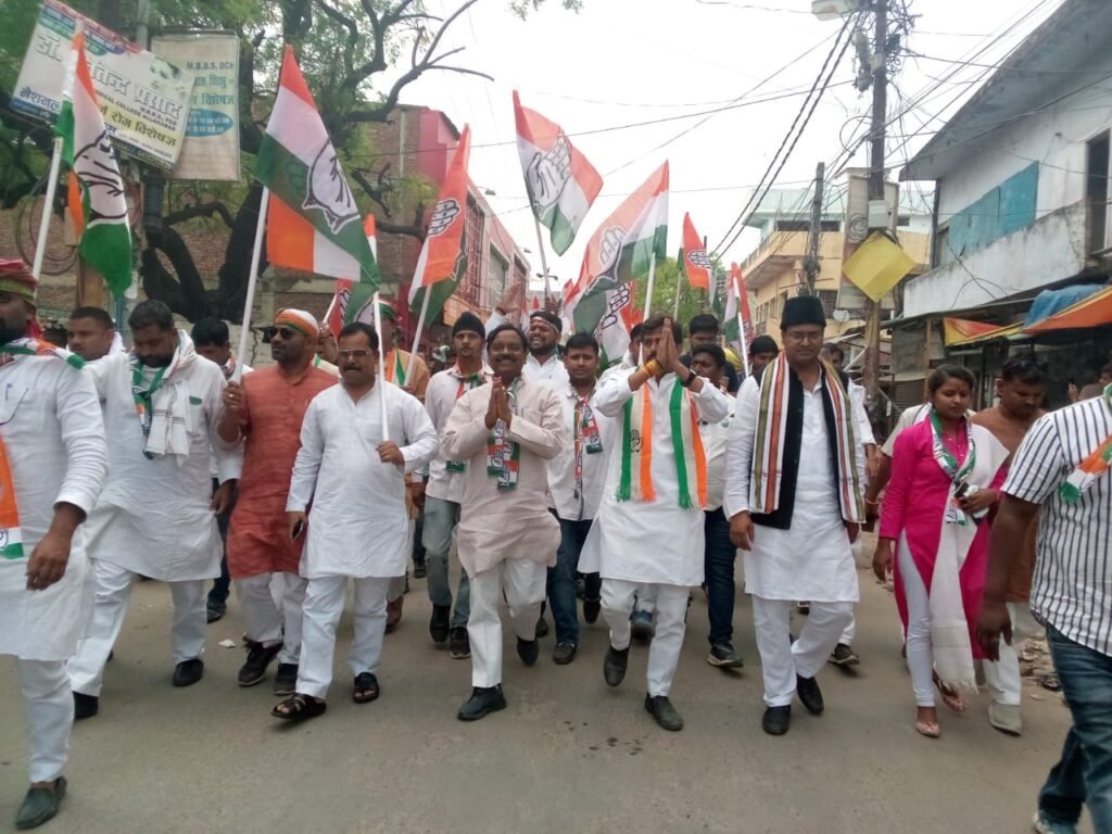 पदयात्रा के माध्यम से कांग्रेसियों ने चेयरमैन प्रत्याशी वरुण मिश्र के समर्थन में वोट करने की मांग की। वही जनपद की सड़कों पर दिखा कांग्रेसियों का भारी जनसैलाब शहर में चर्चा का विषय बन गया। लंबे समय से अपनी जमीन खो चुकी कांग्रेस नगर पालिका चुनाव में मजबूती के साथ उभर रही है। इस मौके पर वरिष्ठ कांग्रेसी नेता रामार्य पाठक,शकील अंसारी, लाल पद्माकर सिंह,निकलेश सरोज, राजेश तिवारी सिराज अहमद भोला, आरबी पांडे, महेश मिश्रा योगेश पांडे मानस तिवारी धर्मराज मिश्रा सलाउद्दीन हाशमी रब्बन हाशमी, राजीव सिंह, मो सोहेल खान, ममनून आलम, रंजीत सिंह सलूजा जनार्दन शुक्ला वरिष्ठ नेता लक्ष्मीकांत मिश्र राहुल मित्र बबलू जीशान अहमद काली सहाय सिंह दयाशंकर दुबे ओपी दुबे, मोहसिन सलीम, गुलाम मोइनुद्दीन इरफान एडवोकेट बिभु पांडे मो इमरान खान, रणवीर सिंह, शरद श्रीवास्तव, राजेश श्रीवास्तव, मानिक चंद श्रीवास्तव, ईशान अहमद, विनय तिवारी,आमिर पठान, नफीस पठान, नंदलाल मौर्य, मनोज तिवारी,उस्मान खा, नारायण,मोहित दयाशंकर दुबे अतिउल्ला अंसारी सहित बड़ी संख्या में लोग शामिल रहे।