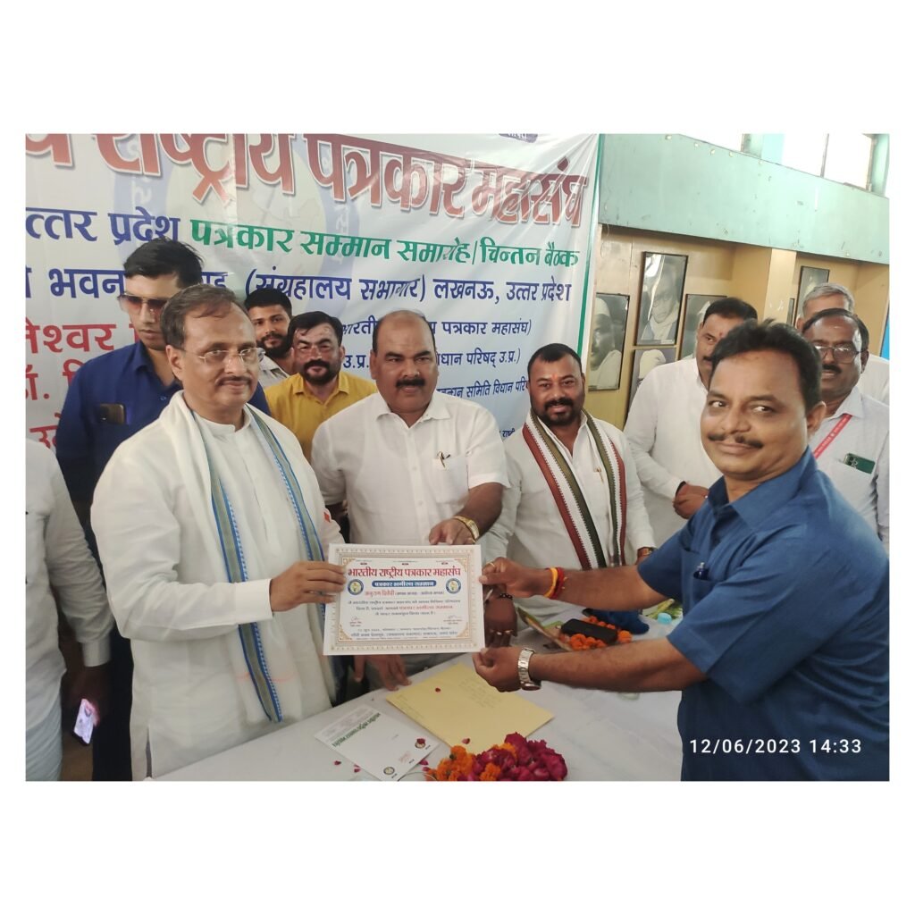 लखनऊ।राजधानी के गांधी भवन प्रेक्षागृह, संग्रहालय सभागार में भारतीय राष्ट्रीय पत्रकार महासंघ उत्तर प्रदेश इकाई की प्रान्तीय कार्यसमिति में पत्रकारिता के उन्नयन को लेकर परिचर्चा एवं चिन्तन का आयोजन किया गया। कार्यक्रम का शुभारम्भ बापू की प्रतिमा पर सभी अतिथियों द्वारा माल्यार्पण करने के बाद हुआ।