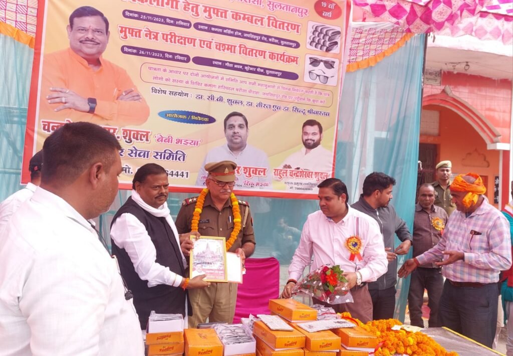 कूरेभार,सुल्तानपुर। लोकाधिकार सेवा समिति के राष्ट्रीय अध्यक्ष चंद्रशेखर शुक्ला बेबी भैया व जयसिंहपुर ब्लाक प्रमुख राहुल शुक्ला के संयोजन में कूरेभार बाजार स्थित गीता मंदिर पर निशुल्क नेत्र परीक्षण एवं चश्मा वितरण किया गया।कैम्पमें 550 लोगों को चश्मा वितरण किया गया।