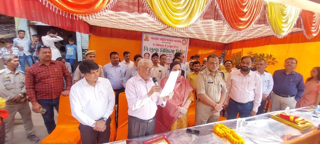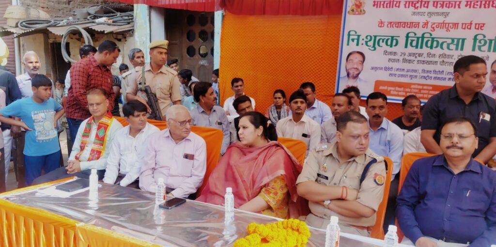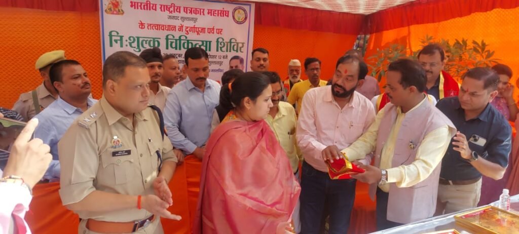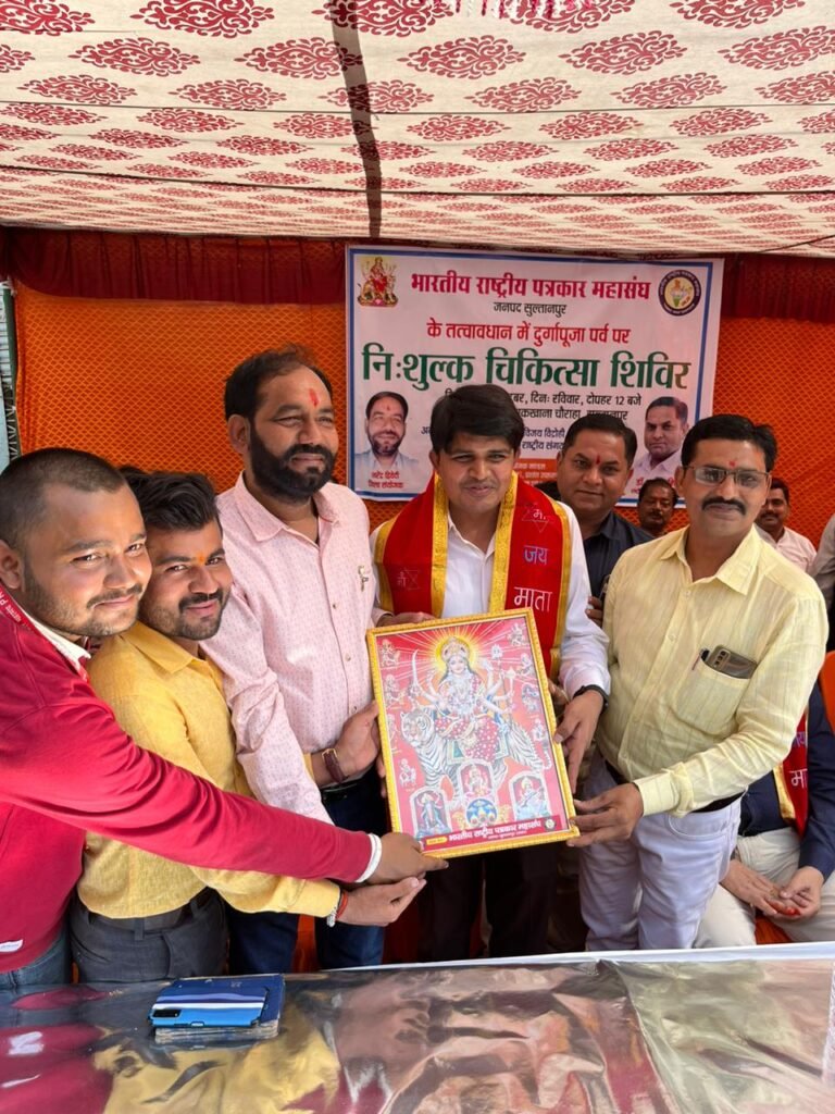 एसपी सोमेन बर्मा ने कहा कि “यह मेरा सौभाग्य है कि दूसरी वर्ष की दुर्गा पूजा में रहने का अवसर मिला है।यहां के पत्रकार बंधुओं का सदैव सहयोग मिलता है।” सीएमओ,सीएमएस व डा रवि त्रिपाठी ने संक्रमण रोगों के प्रति जागरूक किया।सैकड़ों मरीजों को निःशुल्क इलाज व दवाएं वितरित की गई। शिविर का आयोजन विसर्जन के दिन राष्ट्रीय चिकित्सा प्रभारी डा.अशोक मिश्र,सत्यप्रकाश गुप्ता,मंडल अध्यक्ष अनुराग द्विवेदी ,जिला संयोजक नरेंद्र द्विवेदी के नेतृत्व में हुआ। जिसमे मुख्य चिकित्साधिकारी डॉ.ओपी चौधरी,सीएमएस डॉ. एस.के गोयल,जिला सूचना अधिकारी डॉ.धीरेंद्र यादव,वरिष्ठ नेत्र सर्जन डॉ रवि त्रिपाठी, डॉ.आस्था त्रिपाठी, डॉ.आभा सिंह डॉ.शैलेंद्र त्रिपाठी,वरुण मिश्रा,बार सचिव आर्तमणिमिश्रा सपत्नीक,अभिषेक सिंह,अरुण द्विवेदी,अरुण सिंह,दिनेश मिश्रा रहे मौजूद।