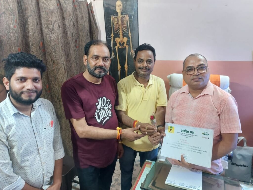 • चिकित्सक को नेक कार्यों पर दिया बधाई व सम्मान