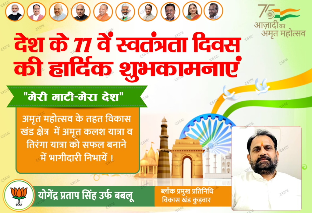 कुड़वार,सुल्तानपुर।(इन्द्रसेन दुबे, संवाददाता) क्षेत्र के जेपी एसएस पब्लिक स्कूल में आजादी के अमृत महोत्सव के तहत मेरी माटी मेरा देश कार्यक्रम के तहत 77 वां स्वतंत्रता दिवस बड़े ही धूमधाम व हर्षोल्लास के साथ मनाया गया।इस अवसर स्कूल के छात्र छात्राओं ने सांस्कृतिक व देशभक्ति कार्यक्रम प्रस्तुत किया।