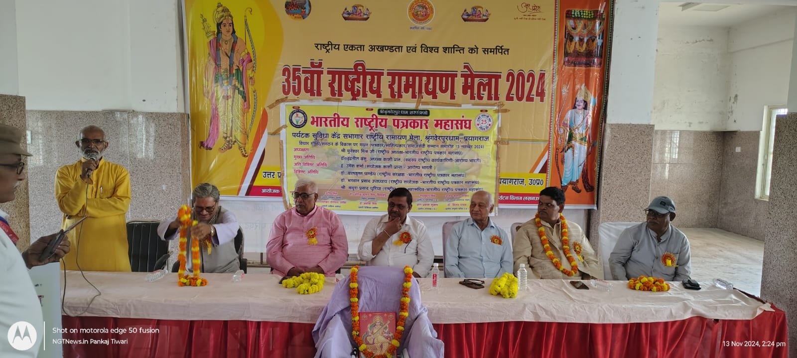 श्रृंगवेरपुर धाम में कार्यक्रम की अध्यक्षता महासंघ के राष्ट्रीय अध्यक्ष मुनेश्वर मिश्र जी ने किया और मुख्य अतिथि डॉ० इंद्रनील बसु अध्यक्ष काशी प्रांत सदस्य राष्ट्रीय कार्यकारिणी आरोग्य भारती रहे | अति विशिष्ट अतिथियों में इंजी० उमेश शर्मा संयोजक काशी प्रांत आरोग्य भारती, डॉ बालकृष्ण पांडेय राष्ट्रीय संरक्षक भारतीय राष्ट्रीय पत्रकार महासंघ, डॉ भगवान प्रसाद उपाध्याय राष्ट्रीय संयोजक भारतीय राष्ट्रीय पत्रकार महासंघ, मथुरा प्रसाद धुरिया राष्ट्रीय मुख्य महासचिव भारतीय राष्ट्रीय पत्रकार महासंघ ,पुरुषोत्तम मिश्रा प्रान्त अध्यक्ष मध्य प्रदेश उपस्थित रहे । उक्त अवसर पर पटना बिहार से आए अशोक प्रसाद कुणाल , मधेश्वर विश्वकर्मा , पवनेश कुमार पवन राष्ट्रीय मीडिया प्रभारी सहित चित्रकूट से डा० सतीश बब्बा, प्रदीप सिंह प्रभारी देश दर्शन प्रकोष्ठ, राम लखन चौरसिया वागीश प्रभारी साहित्य प्रकोष्ठ, रविंद्र कुशवाहा प्रभारी सांस्कृतिक प्रकोष्ठ, प्रभारी उत्तर प्रदेश सच्चिदानंद मिश्र, प्रांतीय उपाध्यक्ष उ० प्र० ज्ञान प्रकाश शुक्ला , प्रांतीय मुख्य महासचिव उत्तर प्रदेश मधुसूदन सिंह, प्रांतीय संयुक्त सचिव डॉ विजय यादव प्रयागराज मण्डल महासचिव शमशाद अली , मण्डल उपाध्यक्ष अजय ओझा जिला अध्यक्ष सुलतानपुर नरेंद्र द्विवेदी, जिलाध्यक्ष आजमगढ़ कृष्ण मणि शुक्ल , दुर्गा राय , उमेश मिश्र, विशाल साहू , पंकज गुप्ता, विकास केलकर, कुंवर तौकीर खान ,विकास मिश्र , अनिल तिवारी महेश , संदीप मिश्र, राहुलजी, राकेश तिवारी ,