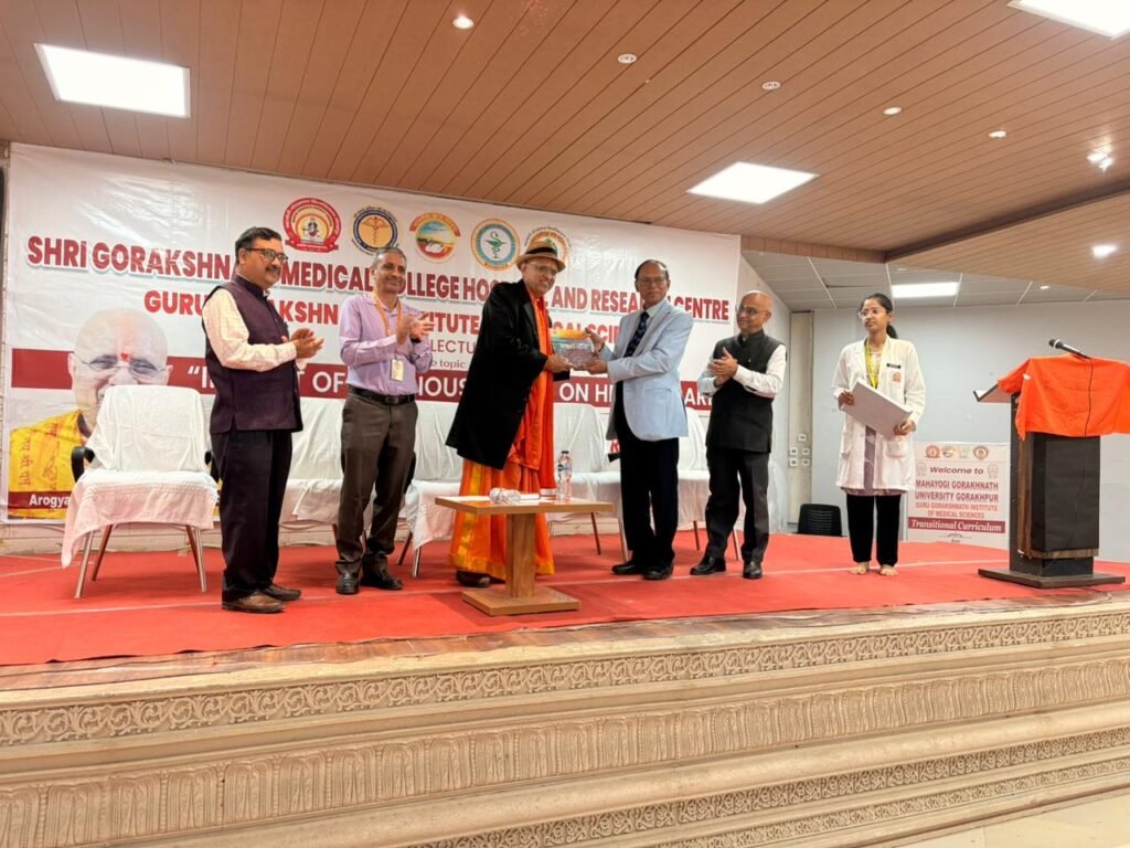 गोरखपुर।महायोगी गोरखनाथ विश्वविद्यालय, गोरखपुर के अधीन गुरु गोरक्षनाथ इंस्टीट्यूट ऑफ मेडिकल साइंसेज, आयुर्वेद में भारतीय ज्ञान परंपरा (IKS) केन्द्र पर “स्वास्थ्य देखभाल पर धार्मिक विश्वासों का प्रभाव” विषय पर व्याख्यान का आयोजन किया गया।कार्यक्रम के मुख्य अतिथि पीएचडी डिप्लोमेट, अमेरिकन बोर्ड ऑफ फ़ॉरेंसिक मेडिसिन प्रोफ़ेसर, मेडिसिन विभाग,वरिष्ठ वैज्ञानिक, फार्माकोलॉजिस्ट, यू.एस.फ़ूड एंड ड्रग एडमिनिस्ट्रेशन डॉ. रमा एस. द्विवेदी ने चर्चा करते हुए आइंस्टीन द्वारा 1930 में प्रकाशित “रिलिजन एण्ड साइंस” का संदर्भ दिया।