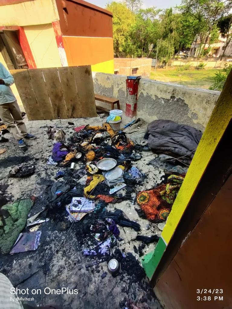• बिस्तर-भोजन समेत सभी सामग्री जलकर राख, DM ने दिए जांच के आदेश।