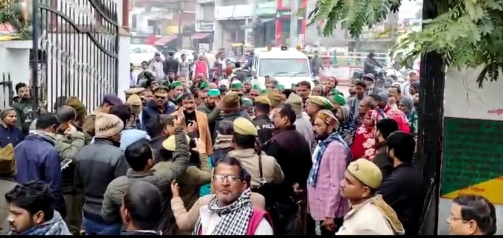 इस दौरान किसान नेताओं और एसडीएम सीपी पाठक के बीच कुछ बहस भी हुई किसान नेता अपने समर्थकों के साथ कलेक्ट्रेट गेट पर बैठ गए और जिला प्रशासन के खिलाफ नारेबाजी करने लगे,अंत में जिलाधिकारी को ज्ञापन सौप मांगे निपटाने की बात कही।