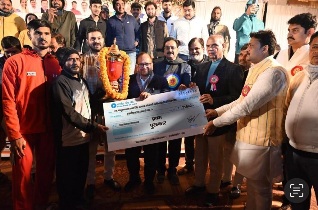 सुल्तानपुर l जिले के शहर स्थित नारायणपुर में स्वर्गीय अवध नारायण सिंह स्मारक वॉलीबॉल टूर्नामेंट में आयोजक चंदन नारायण सिंह भाजयुमो अध्यक्ष युवा मोर्चा सुल्तानपुर की अगुआई में बक्सर लखनऊ प्रयागराज वाराणसी अयोध्या गाजीपुर आजमगढ़ बाराबंकी और सुल्तानपुर की टीमों ने प्रतिभाग किया ।प्रतियोगिता का उद्घाटन मैच गाजीपुर और अयोध्या के बीच खेला गया । शनिवार देर रात तक चले आयोजन में फाइनल मुकाबले में आजमगढ़ ने डीवीए को तीन सेट के मैच में 2-0 से जीत दर्ज की । दोनों सेट में संघर्षपूर्ण मुकाबला देखने को मिला ।बेस्ट अटैकर धनंजय बेस्ट सेटर करन सिंह और बेस्ट ऑल राउंडर जमाली रहे l दोनों टीम के खिलाड़ियों ने अच्छा प्रदर्शन किया ।मुकाबला शनिवार देर रात संपन्न हुआ ।आयोजक चन्दन नारायण सिंह ने अपने बाबा स्वर्गीय बाबू अवध नारायण सिंह जी की 25वीं पुण्यतिथि के अवसर पर श्रद्धा सुमन अर्पित कराते हुए बताया कि वे फील्ड हॉकी के जादूगर मेजर ध्यानचंद के साथ अपने समकालीन श्रेष्ठ खिलाड़ियों में गिने जाते थे स्वतंत्रता के पश्चात उच्च प्रशासनिक अधिकारी के रूप में उत्तर प्रदेश में सेवा दी उनका संपूर्ण जीवन समाज सेवा, शिक्षा और राष्ट्र निर्माण को समर्पित रहा। समापन के अवसर पर मुख्य अतिथि भाजयुमो के प्रदेश महामंत्री हर्षवर्धन सिंह ने खिलाड़ियों को पुरस्कृत किया । विशिष्ट अतिथि डॉ ए के सिंह डॉ सुधाकर सिंह पूर्व जिलाध्यक्ष डॉ आर ए वर्मा,डॉ डी पी सिंह,अवनीश सिंह गुड्डू ,भाजयुमो जिलाध्यक्ष मछलीशहर अखिल सिंह और प्रतापगढ़ जिलाध्यक्ष अंशुमान सिंह,गोकरन पाठक, श्रवण पाठक ने भी खिलाड़ियों को मेडल देकर सम्मानित किया ।आयोजन संरक्षक पूर्व राष्ट्रीय वॉलीबॉल खिलाड़ी गिरीश नारायण बब्बन सिंह की निगरानी में आयोजन हुआ।