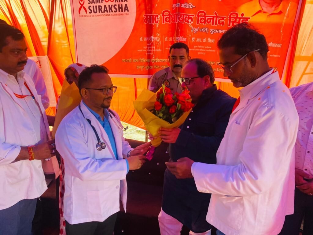 सुल्तानपुर(दस्तक भारत न्यूज)।संपूर्ण सुरक्षा स्वास्थ कैंप में करीब 250 मरीजों की जांच इलाज व मुफ्त में दवाइयां वितरित की गई।बतौर मुख्य अतिथि के रूप में पहुंचे पूर्व मंत्री व क्षेत्रीय विधायक विनोद सिंह का स्वागत प्रधान समेत ग्रामीणों ने किया।