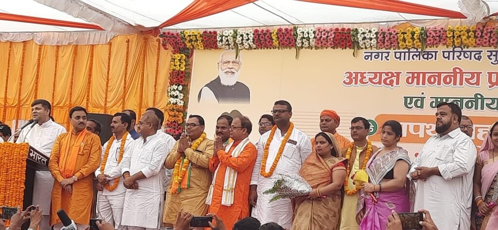 नगर के राम नरेश सभागार में आयोजित कार्यक्रम स्थल पर प्राविधिक शिक्षा मंत्री आशीष पटेल का जिलाधिकारी जसजीत कौर और पुलिस अधीक्षक सोमेन बर्मा ने मंच पर स्वागत किया।वही अधिशाषी अधिकारी श्यामेंद्र मोहन ने सभी अतिथियों व अफसरों के साथ नव निर्वाचित पालिकाध्यक्ष,सभासदों को बुके व माला पहनाकर स्वागत किए।श्री पटेल ने पालिका क्षेत्र के सभी मतदाताओ को सर्वाधिक अंतर से जीत के लिए आभार व्यक्त किए। राष्ट्रीय अध्यक्ष की तरफ से ओबीसी आरक्षण को लेकर जो सवाल उठाया गया है। पत्र में जो विषय उठाया गया है। वह मुख्यमंत्री के संज्ञान में लाया गया है।