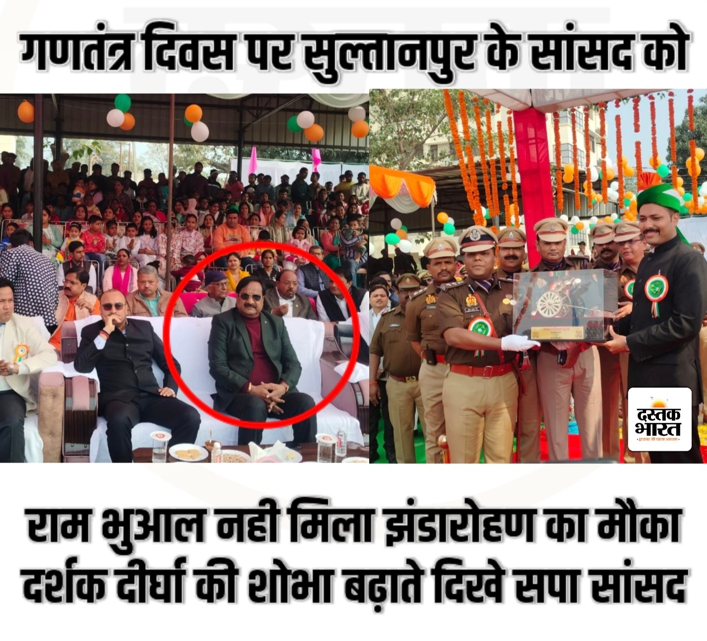 सुल्तानपुर (दस्तक भारत न्यूज )। जिले के पुलिस लाइन ग्राउंड में गणतंत्र दिवस के मौके पर 77वें गणतंत्र दिवस समारोह में सांसद राम भुआल को उपेक्षा का शिकार होना पड़ा।कायर्क्रम उस समय असहज स्थिति उत्पन्न हो गई, जब कार्यक्रम में शामिल सांसद राम भुआल निषाद को अपेक्षित सम्मान नहीं मिला।एसपी ने सासंद के मौजूद रहने के बाद भी जिलाधिकारी को मुख्यतिथि बनाया था।फिलहाल यह घोषणा पहले से ही थी।खैर वह आधे कार्यक्रम में ही उठकर चले गए। इस घटनाक्रम को लेकर राजनीतिक हलकों में चर्चा तेज हो गई है।