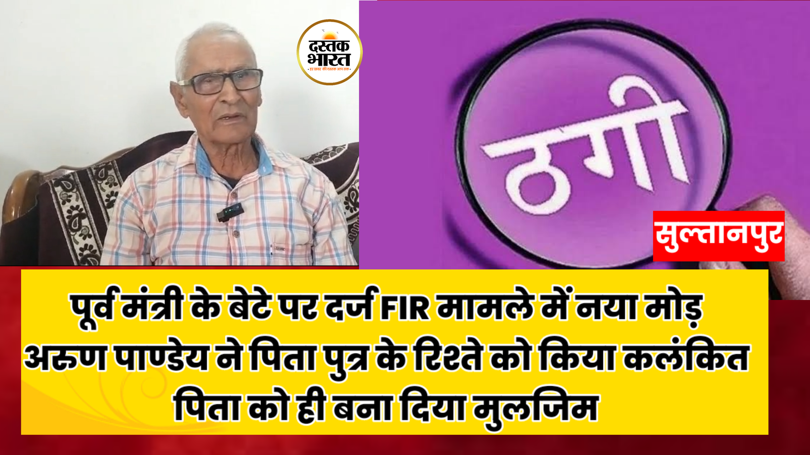 सुल्तानपुर।संपत्ति व पैसों के लालच में सब कुछ जायज है ।यूपी के सुल्तानपुर जिले में अरुण कुमार पांडेय नाम के युवक ने पिता पुत्र के रिश्ते को कलंकित करने के लिए पिता पर ही जालसाजी धोखाधड़ी का मुकदमा दर्ज करा दिया है।वही पिता राम चरित्र पाण्डेय ने कलयुगी बेटे से तंग आकर घर बार छोड़ वृद्ध पिता छोटे बेटे के ससुराल में रहने लगा फिर भी वृद्ध पिता व अन्य के खिलाफ जालसाजी और साजिश का मुकदमा दर्ज कर दिया।पूरे मामले से तंग आकर पिता राम चरित्र पाण्डेय ने कलयुगी बेटे से अपने अंतिम संस्कार का अधिकार छीन लिया है। पिता का कहना है कि वे डीएम एसपी व सीएम योगी के जनता दर्शन में जाकर न्याय मांगेंगे।यदि न्याय नहीं मिला तो अपना प्राण त्याग देंगे।