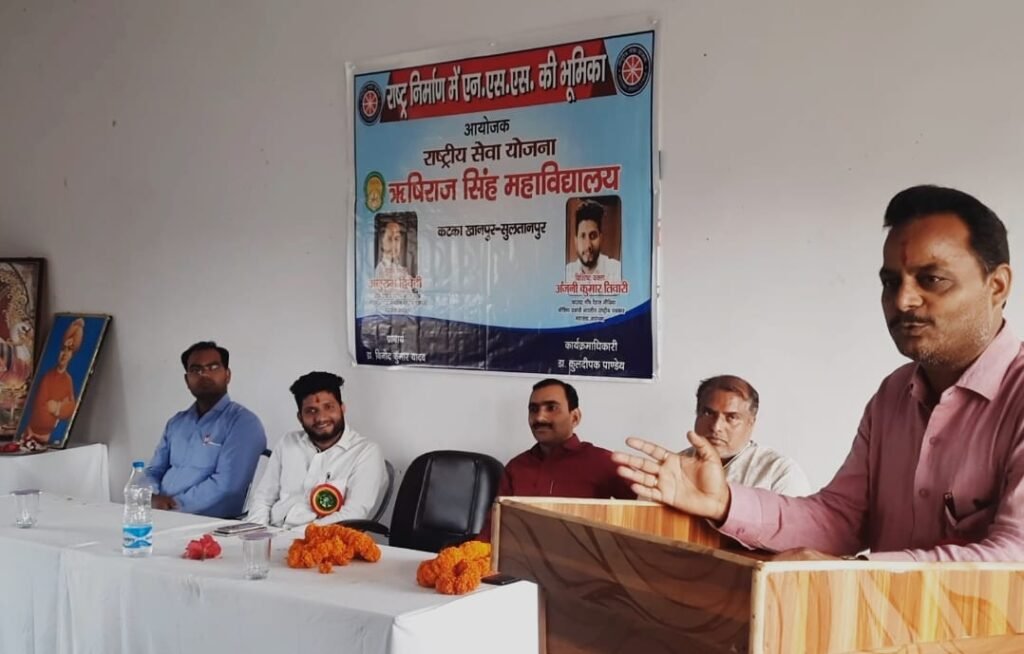 सुल्तानपुर। जनपद के कटका खानपुर में स्थित ऋषिराज सिंह महाविद्यालय में राष्ट्रीय सेवा योजना की ओर से चल रहे प्रशिक्षण शिविर में “राष्ट्र निर्माण में एन.एस.एस की भूमिका”विषय पर संगोष्ठी का आयोजन किया गया।संगोष्ठी का शुभारंभ बतौर मुख्य अतिथि मंडल अध्यक्ष अनुराग द्विवेदी ने मां सरस्वती पूजन अर्चन के साथ शुरू किया