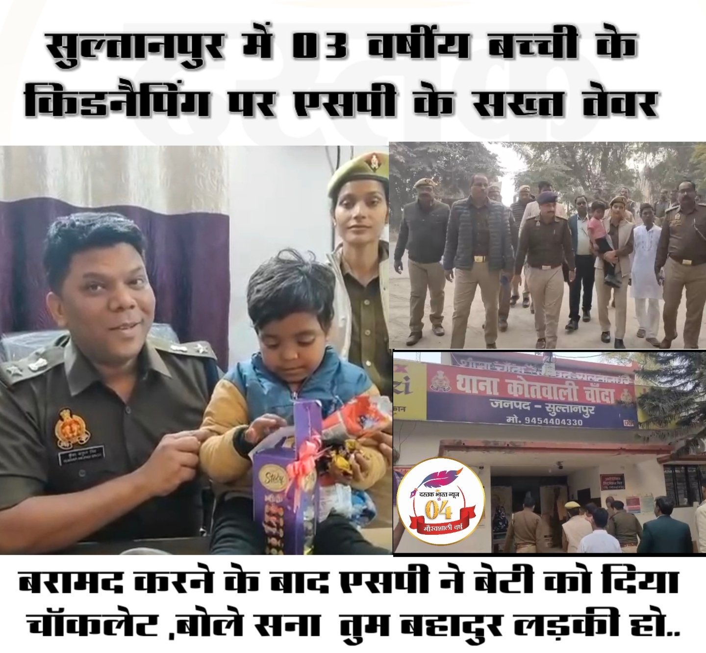 सुल्तानपुर।जिले के चांदा कोतवाली क्षेत्र में दिनदहाड़े एक तीन वर्षीय बच्ची का अपहरण कर लिया गया। पुलिस अधीक्षक के सख्त निर्देश पर पुलिस ने त्वरित कार्रवाई करते हुए बच्ची को एक घंटे के भीतर सकुशल बरामद कर लिया और आरोपी को हिरासत में ले लिया। यह सप्ताह भर के भीतर अपहरण का दूसरा मामला है।