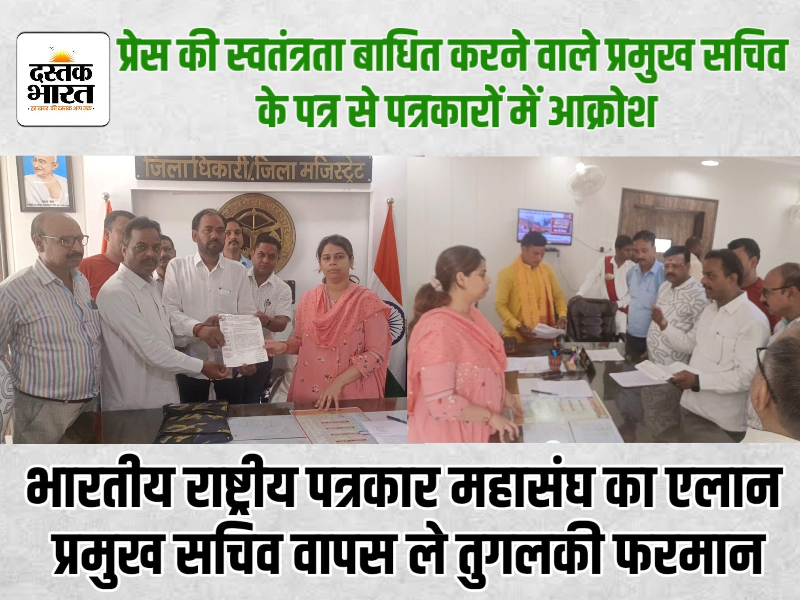 मंडल अध्यक्ष अनुराग द्विवेदी ने कहा कि लोकतंत्र के चौथे स्तंभ के रूप स्थापित मिडिया को उसके दायित्वों पर अंकुश न लगाया जाय। इस प्रकार के आदेश से संविधान में प्रदत्त मूल अधिकारों का हनन होगा।ज्ञापन में प्रमुख सचिव के आदेश को तत्काल वापस लेने की मांग करते हुए कहा गया है कि अगर आदेश वापस नहीं लिया गया तो बड़े स्तर पर भारतीय राष्ट्रीय पत्रकार महासंघ विशाल धरना प्रदर्शन करेगा।