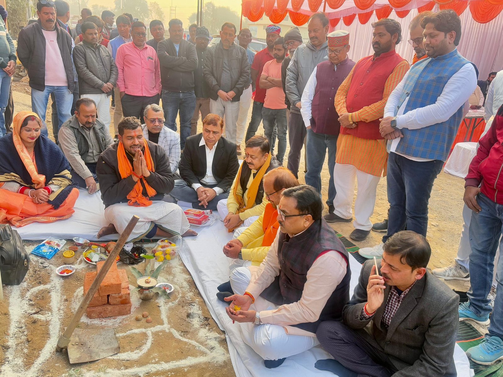पूजन के साथ जिलाध्यक्ष व पालिकाध्यक्ष ने किया शिलान्यास