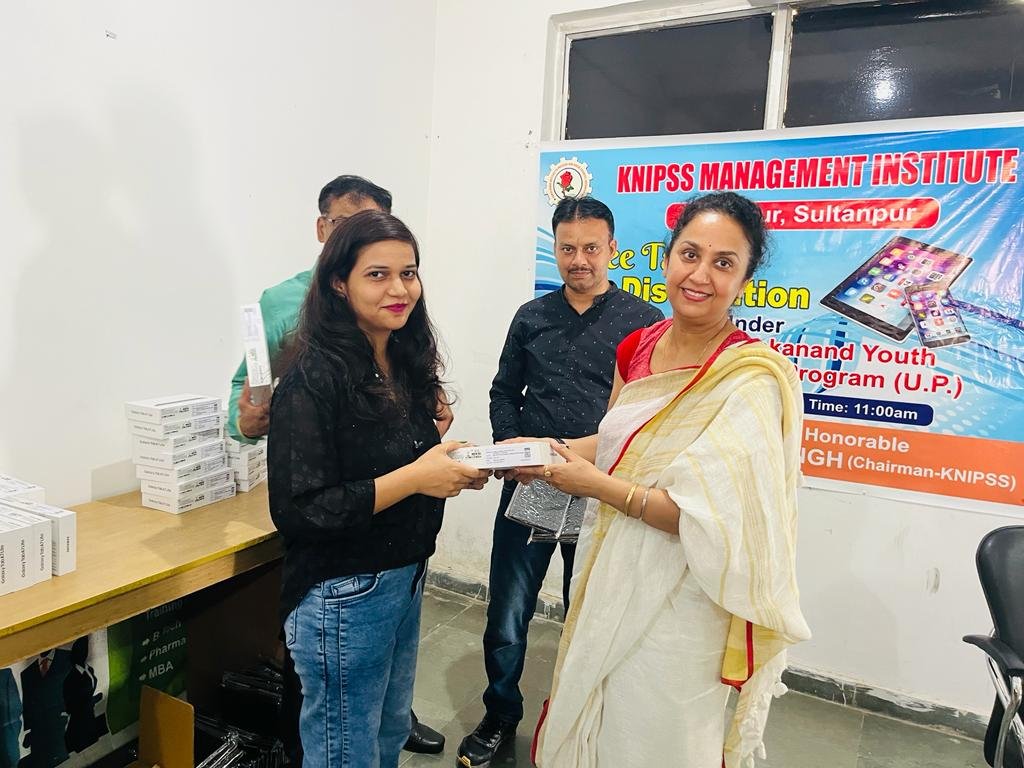 सुल्तानपुर।यूपी सरकार ने विगत वर्ष में छात्र छात्राओं को टैबलेट व स्मार्टफोन देने की घोषणा के क्रम में केएनआईपीएसएस मैनेजमेंट संकाय फरीदीपुर के एमबीए वर्ष 2022 में पास हुए छात्र छात्राओं को टैबलेट वितरित किया गया।1 वर्ष कब लंबे इंतजार के बाद जब एमबीए के छात्रों के हाथों में टेबलेट मिला तो उनके चेहरे खुशी से खिल उठे।