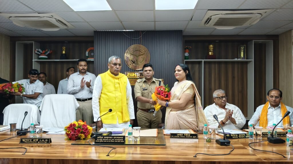 पंचायती राज तथा अल्पसंख्यक कल्याण, मुस्लिम वक्फ एवं हज विभाग/जनपद प्रभारी मंत्री ओम प्रकाश राजभर की अध्यक्षता में अध्यक्ष जिला पंचायत उषा सिंह, भाजपा जिलाध्यक्ष सुशील त्रिपाठी, विधान परिषद सदस्य शैलेन्द्र प्रताप सिंह, विधायक सदर राज प्रसाद उपाध्याय, जिलाधिकारी कुमार हर्ष,पुलिस अधीक्षक कुंवर अनुपम सिंह,मुख्य विकास अधिकारी अंकुर कौशिक,प्रवीन कुमार अग्रवाल पालिकाध्यक्ष, जिलाध्यक्ष सुभासपा विनीत सिंह सहित अन्य जनपद स्तरीय अधिकारियों के साथ नवीन कलेक्ट्रेट सभागार में विकास कार्यों व कानून व्यवस्था के सम्बन्ध में मुख्यमंत्री डैशबोर्ड के माध्यम से समीक्षा बैठक आयोजित की गयी।जिलाधिकारी द्वारा मंत्री का,पुलिस अधीक्षक द्वारा अध्यक्ष जिला पंचायत का,मुख्य विकास अधिकारी द्वारा विधायक सदर सहित अन्य जनप्रतिनिधियों का पुष्पगुच्छ व मोमेंटो देकर स्वागत किया गया,तत्पश्चात् मुख्य विकास अधिकारी द्वारा प्रभारी मंत्री की अनुमति से विकास कार्यों व कानून व्यवस्था की गहन समीक्षा प्रारम्भ की गयी। मुख्य विकास अधिकारी द्वारा समीक्षा बैठक में मंत्री जी को अवगत कराया गया कि माह अगस्त, 2025 में प्रदेश में जनपद की रैंक विकास कार्यों में 35वीं है।